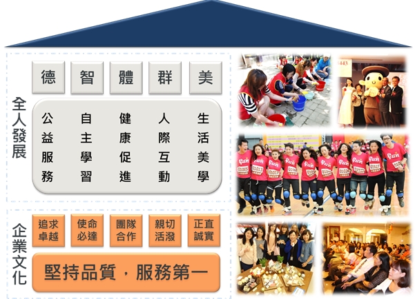 | A.S.O 阿瘦皮鞋創立於1952年,66年的企業經營中,不僅將公司員工視為家人看待,更是國內率先提出「五育並重、全人發展」的人才培育精神,成立「全人發展學院」,透過社會公益項目、體適能班、美學參訪與家庭日等活動促進每位同仁實現美好人生,期待在五育並重的人才培訓制度下,能讓所有同仁體會並落實「真、善、美、新」的品牌精神。 |