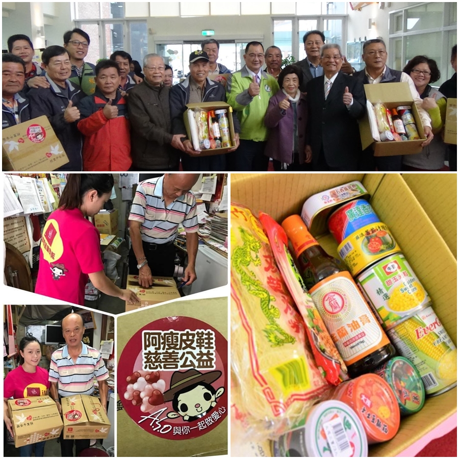 | 除了偏鄉美學推廣外,對於社會上許多弱勢但無法取得社會資源的邊緣戶,2017年阿瘦皮鞋響應推動「村里平安箱」,與全台鄉里長合作共送出1800箱的村里平安箱,提供1800個邊緣家庭生活所需的食品與用品。 |