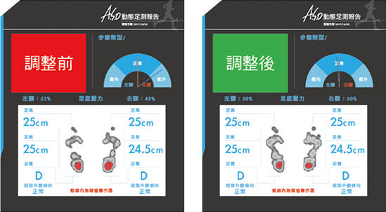 完成動態足壓量測,系統可即時提供「多維度個人化分析報告」,精準分析出受測者足壓變化,雙腳健康狀態一覽無遺。