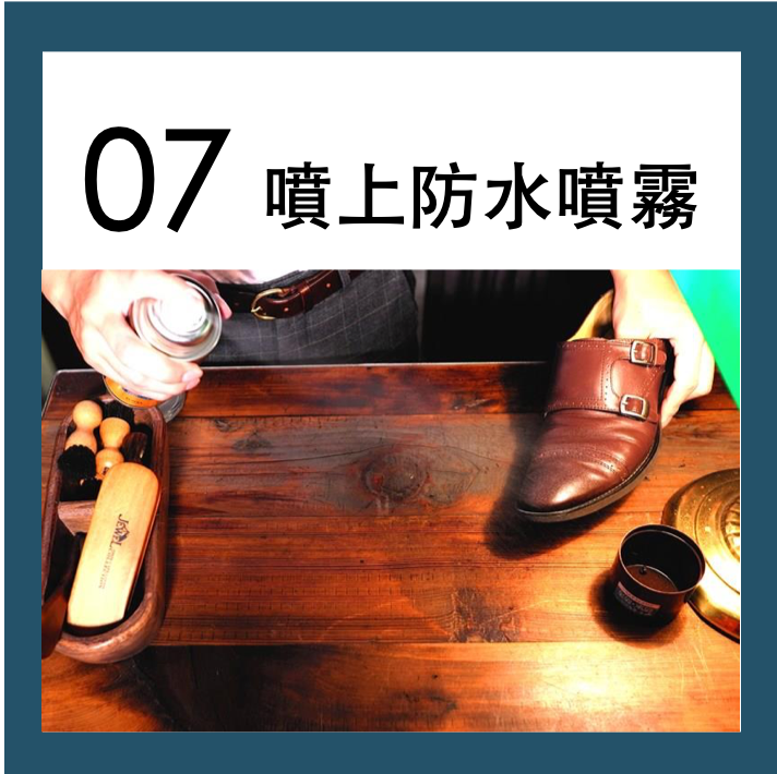 保養完後,可以使用 VIOLA 防水噴霧給皮革上一層保護層,防止水份髒污入侵,更能夠保持愛鞋清潔。