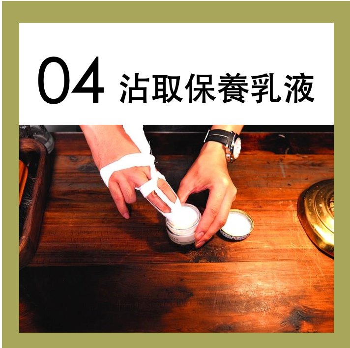 保養完後,靜置三到五分鐘使皮革吸收乳液。